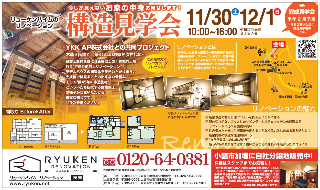 小諸市与良町にてリノベーション物件の構造見学会を行います!