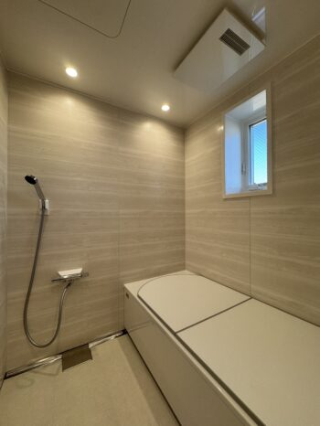 最新のユニットバスを設置。工事前よりも窓を小さくしました。