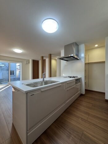 あえてダイニングは作らず、キッチン+リビングのスペース。