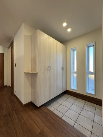 容量の多いシューズボックスを設置。窓もつけ、自然な明りを採り入れます。