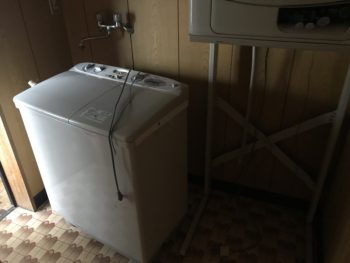 洗面脱衣室は床を貼り替え可愛らしいクロスに♪